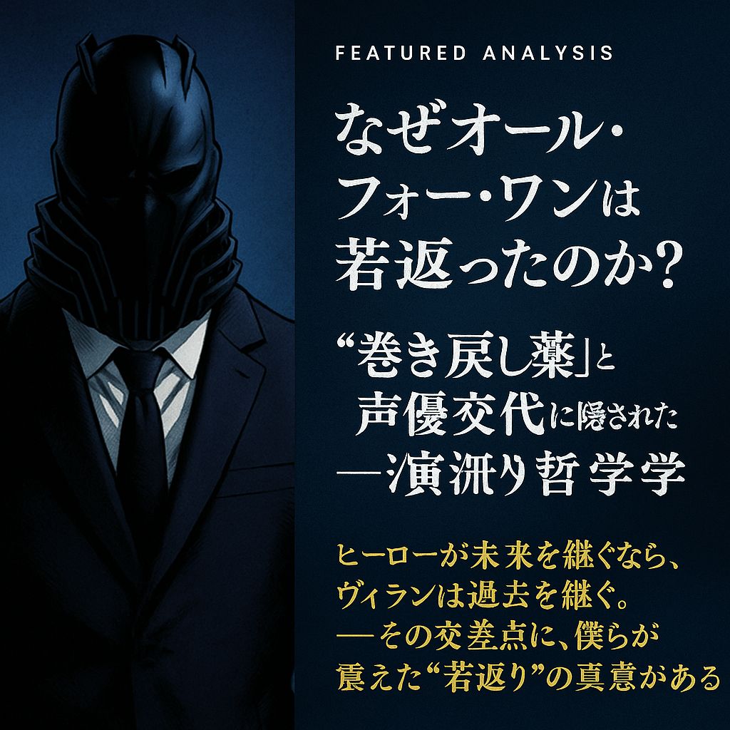 そして、オール・フォー・ワン(AFO)の声優交代――大塚明夫から神谷浩史へ――は、その哲学を極限まで具現化した出来事だった。
