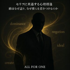 台詞が〈支配〉から〈理想・宣言〉へ。語彙ハイジャックで“悪の進化”を可視化。
